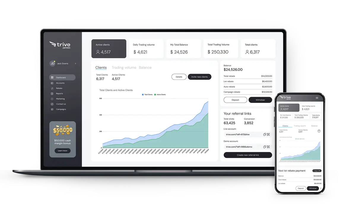 Hasilkan pendapatan bulanan saat nasabah membuka akun dan melakukan trading di Forex, Emas, dan CFDs.